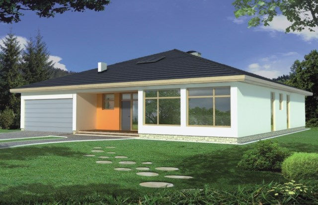 แบบบ้านชั้นเดียว 4 ห้องนอน Contemporary Style เป็นแบบบ้านร่วมสมัย มีการออกแบบที่เรียบง่าย ๆ เป็นแบบบ้านชั้นเดียวที่เน้นการพักผ่อนอย่างแท้จริง รายละเอียดในการตกแต่งตัวบ้านภายนอกจึงไม่เยอะมาก และเหมาะสำหรับคนที่มีงบประมาณจำกัดในการก่อสร้างจริง ๆ โดยจากภาพแบบบ้านชั้นเดียวฟรีแบบนี้ จะเน้นพื้นที่ใช้สอยภายในบ้านให้สอดคล้องกับพื้นที่นอกบ้านด้วยฟังก์ชันของชานบ้านยกระดับสองขั้นบันไดตามภาพ